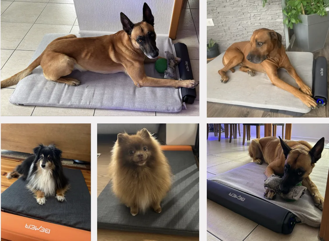 The BEMER Dog Comfort system includes a dedicated comfort mat designed to sit directly on top of the BEMER base, creating a complete dog bed solution.
